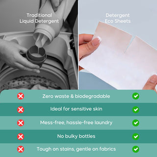 Our ultra-compact sheets free up your shelves and your conscience. 95% less space. 100% compostable. Zero plastic guilt.